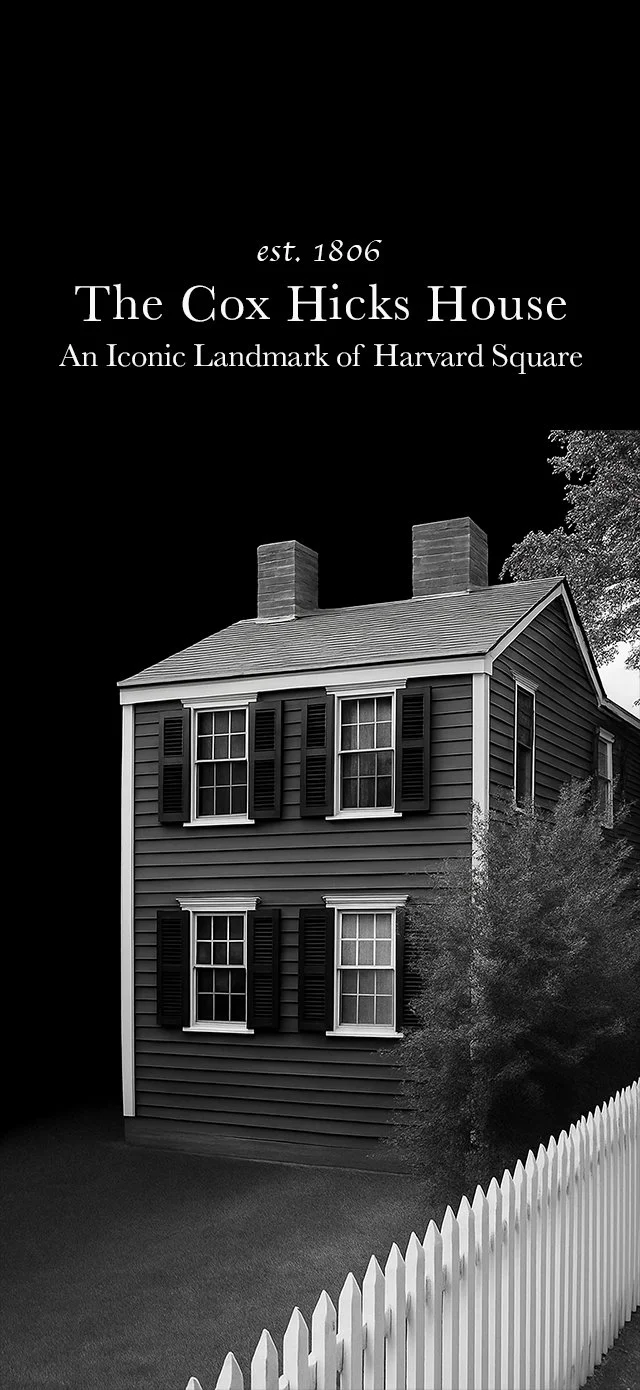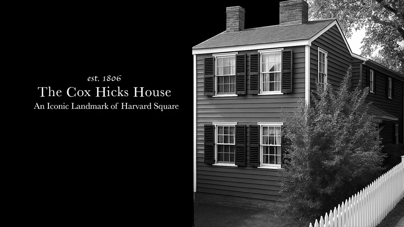The Cox-Hicks House is located at 98 Winthrop Street in the heart of Harvard Square and can be viewed from the public sidewalk at any time. Its unique position atop an 18th-century retaining wall makes it easily visible from the street.